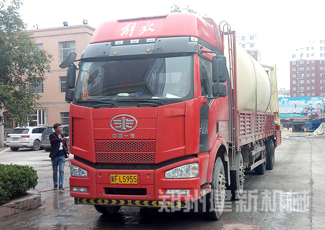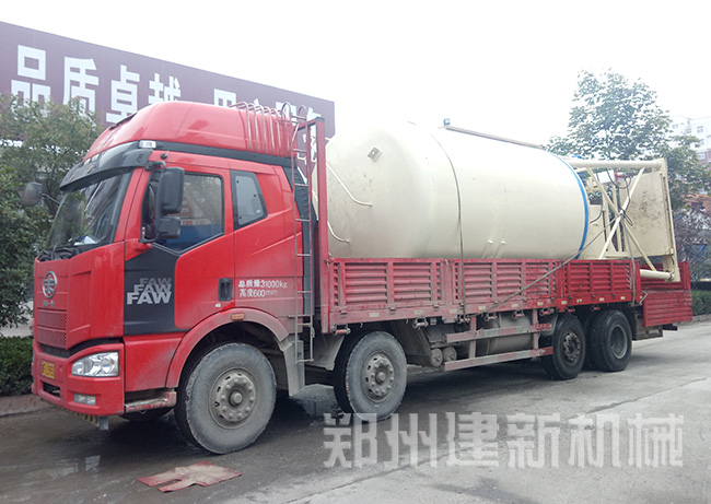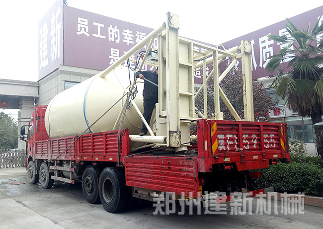 近日,鄭州建新機械生產的干粉砂漿儲料罐發貨山東施工現場現場。